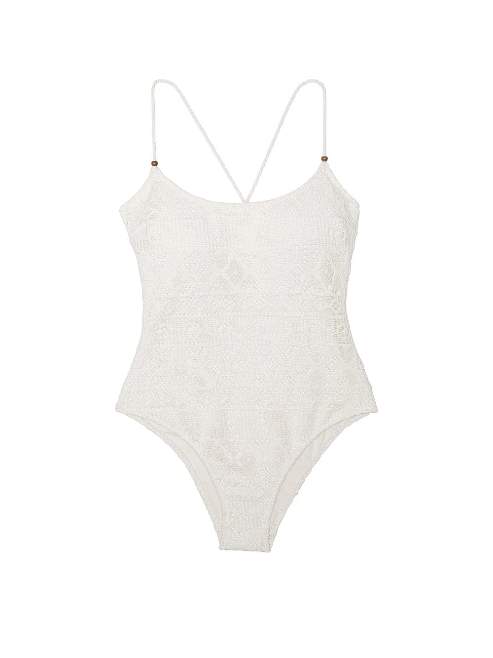 The allure of lace finds its place in the sun with this inspired collection. The lacy look is balanced with a rope lace-up detail in back. Beaded tassels add a chic island vibe to this reimagined One-Piece.