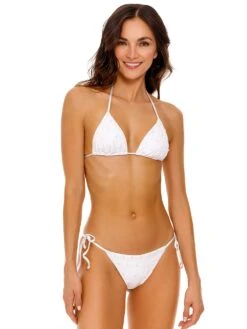 A tropics-ready treasure. X marks the spot where sexy meets sophisticated in this chic, retro-inspired collection featuring provocative, skimpy coverage and hardware-sparked skinny straps. Here, a classic Bikini Bottom gets a polished upgrade.