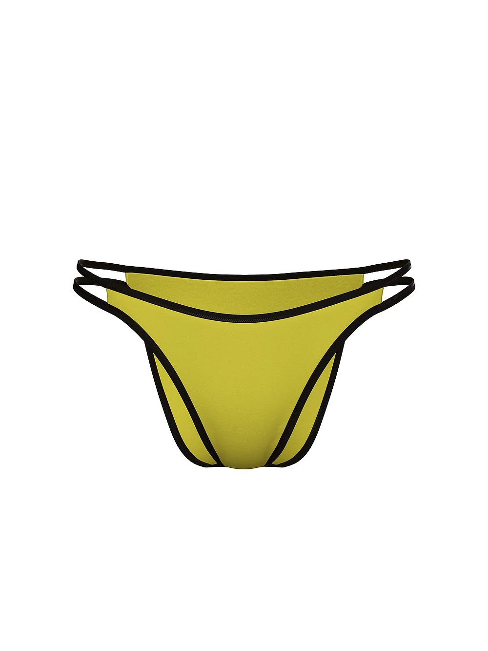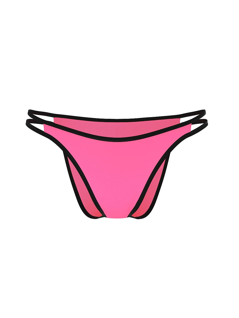 Surf’s up in sexy, pared-down pieces made sporty in scuba-inspired fabric outlined with contrast trim. Wear the double side straps of this pair high on the hips for a leg-lengthening effect.