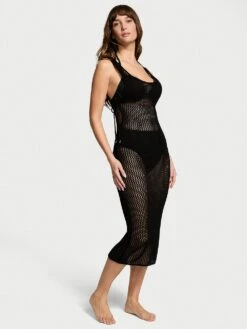 Crochet all day—and night. This soft, open-weave knit midi skims your curves and features adjustable side ties at the sides to let you show off as much or as little as you like.