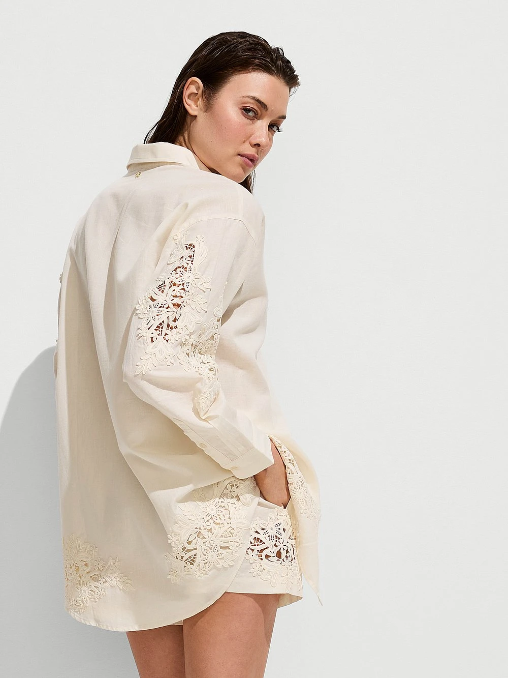 Delicate lace details add a touch of bohemian romance to this breezy style. Wear alone as a coverup or pair with the matching Shorts or Pants for a coastal-chic look.