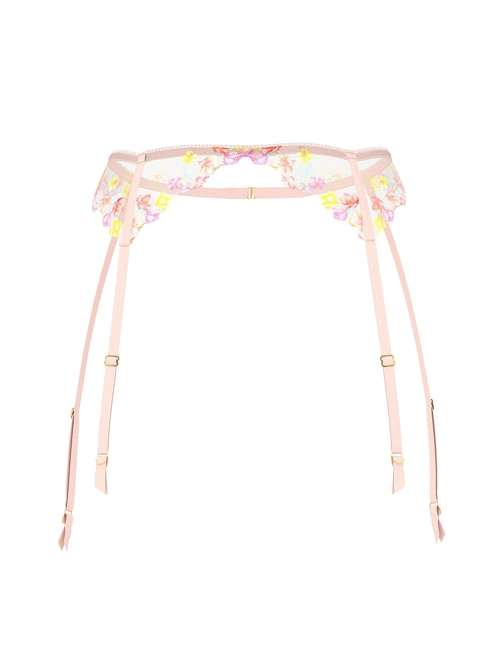 A rainbow of embroidered wildflowers, designed in Europe and sparked with metallic threads, blooms brightly along this sexy-and-sweet Garter Belt.