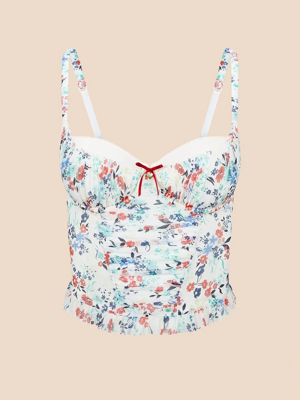 Sheer mesh, layered cups, ruched details, and sweet ruffles combine to exude an ultra-romantic feel on this feminine style. Complete the look with the Brigitta G-string Panty
