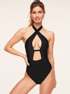 Make a splash with this convertible suit that can go from a deep-V plunge to a high-neck twist.