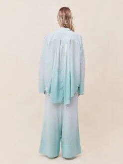- Top: fitted silhouette, long sleeves, notched collar, button-front closure, patch-pocket detail