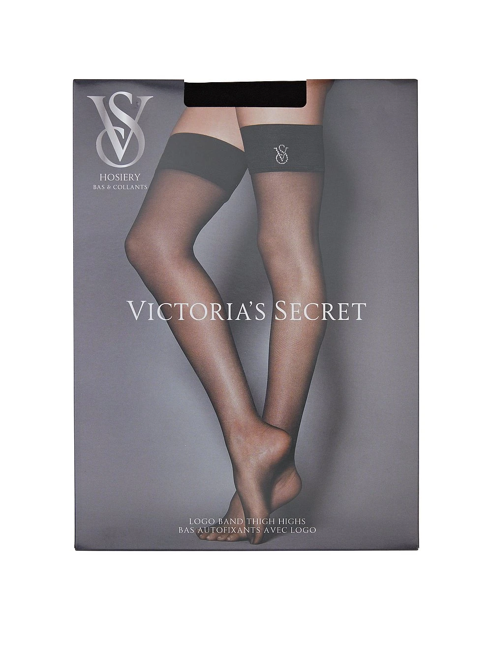 It’ll be our secret. The initials VS, spelled out in rhinestones, bring a little hidden glitter to the wide, comfy bands of these thigh highs, available in a variety of bold colors. Note: These will need a garter belt to hold them up.