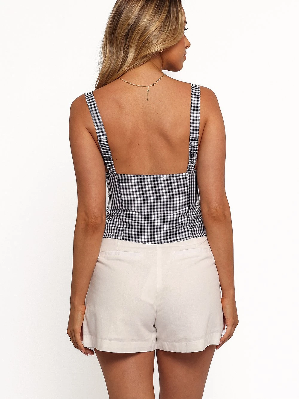 Crafted from a spring-ready gingham fabric, elasticized straps give this breezy silhouette a comfortable finish—meaning your farmers’ market run will be a total breeze (and you’ll look effortlessly chic, too).
