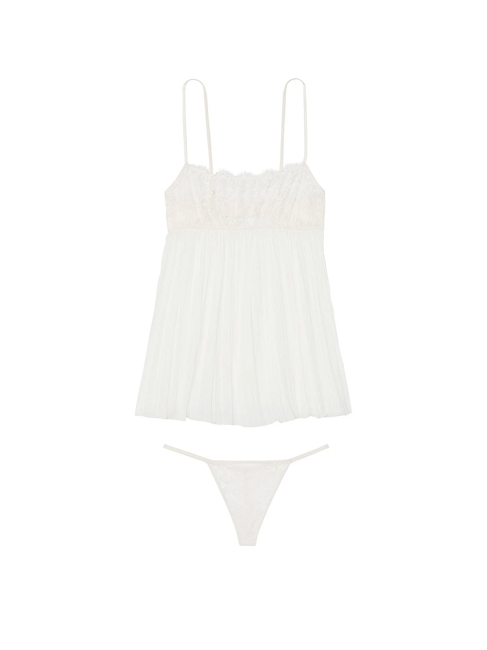 Dreamy meets daring. Sheer, soft ForeverStretch™ Lace tops off the billowy, flyaway skirt on this vintage-inspired design. Finish the look with the matching panty.