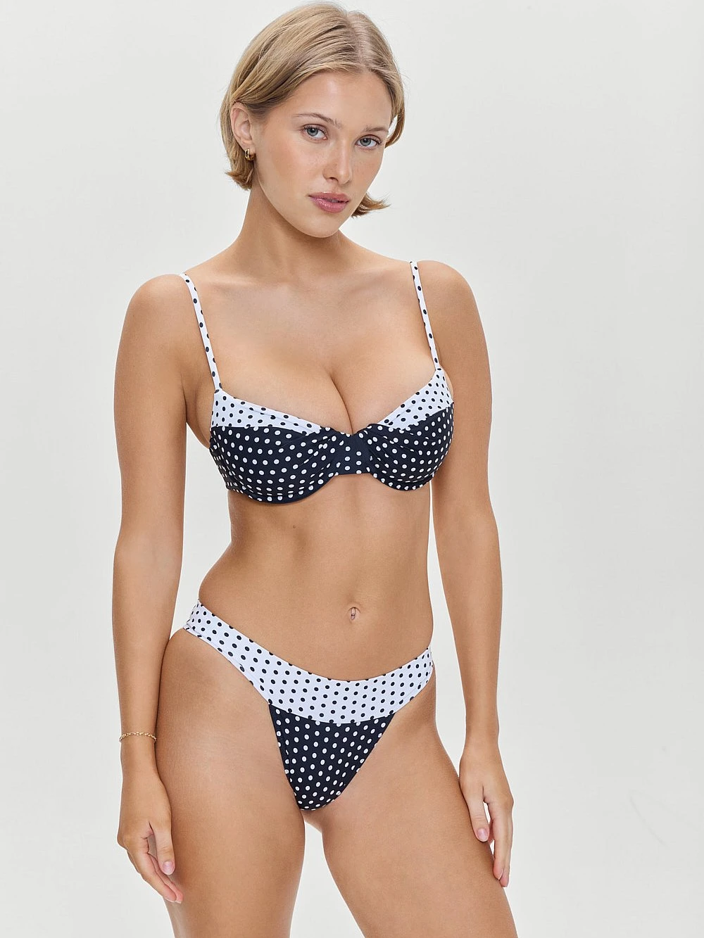Sweet and supportive, this classic Swim style features a romantic balconette silhouette and a vintage-inspired contrasting polka dot pattern. Pair with the Nick Bikini Bottom for the full look.
