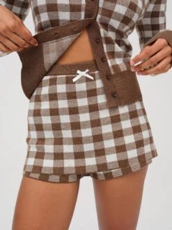 With built-in Shorts for extra comfort and coverage, you’ll be ready to frolic through spring meadows without a care in this vintage-inspired, gingham mini Skort. For an effortless look, pair with the Gingham Knit Jacket.