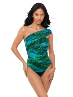 Dive into glamour with this classic Swimsuit that features a convertible off-the-shoulder neckline, ruched details, and thoughtful design that flatters and shapes your curves. A hidden underwire provides extra support.