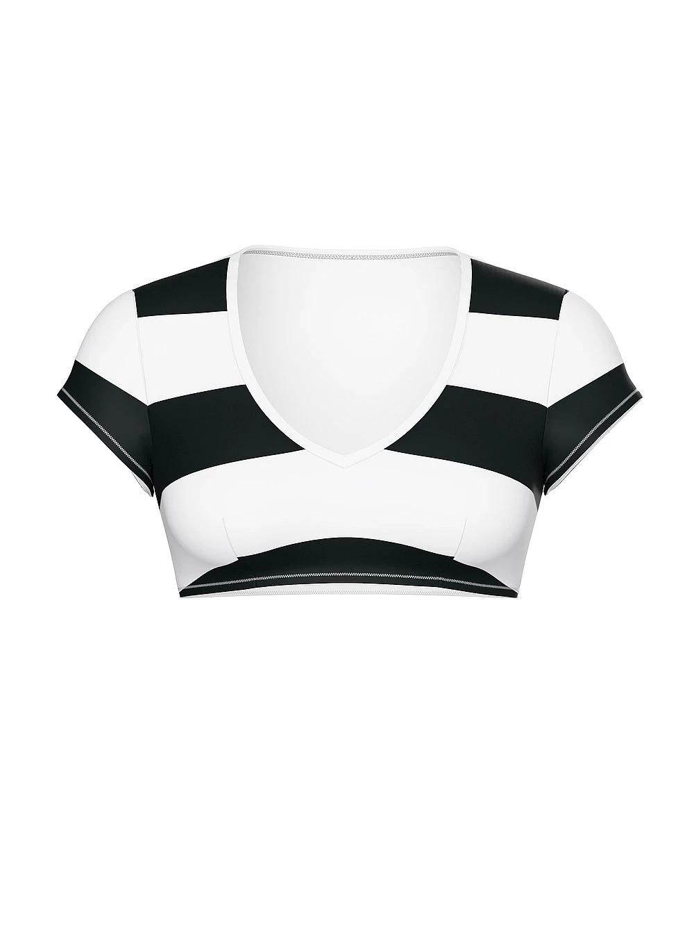 Your hottest summertime style lines up in graphic stripes that rule the pool in bold black and white on sporty neoprene fabric. Take this Crop Top for a swim with the matching Bikini Bottom then pair with Shorts for on-shore adventures.