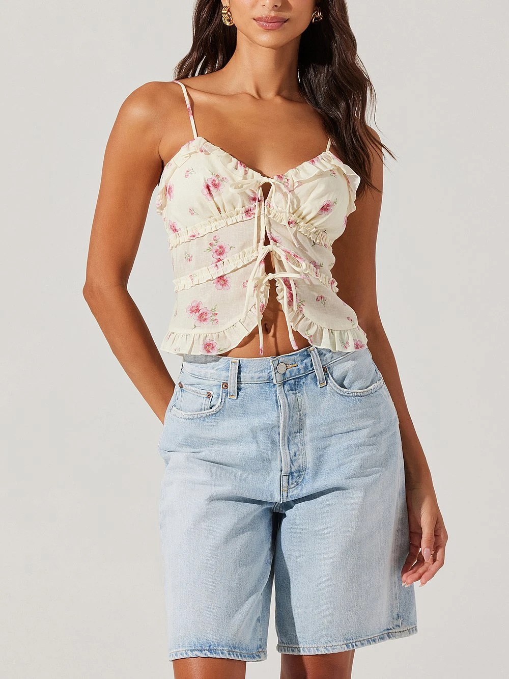 Your next summer romance? This Top. With flirty floral details, dainty ruffled hems, and sweet self-tie accents, you’ll be head over heels.