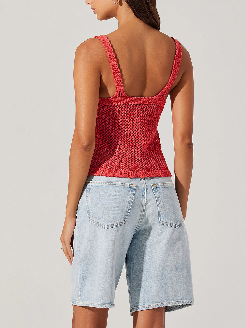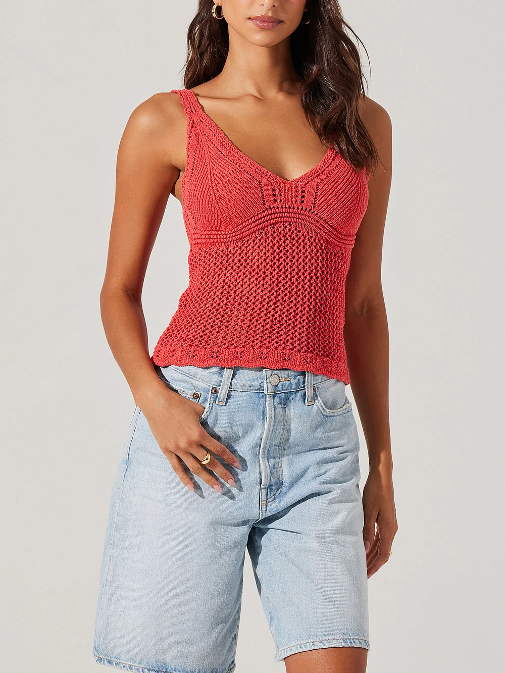 Crocheted from a high-stretch cotton, this boardwalk-ready Tank is finished with a flattering V-neckline and sweet, scalloped trims. Wear it over your Bikini or with your favorite cut-offs for a laid-back summer look.