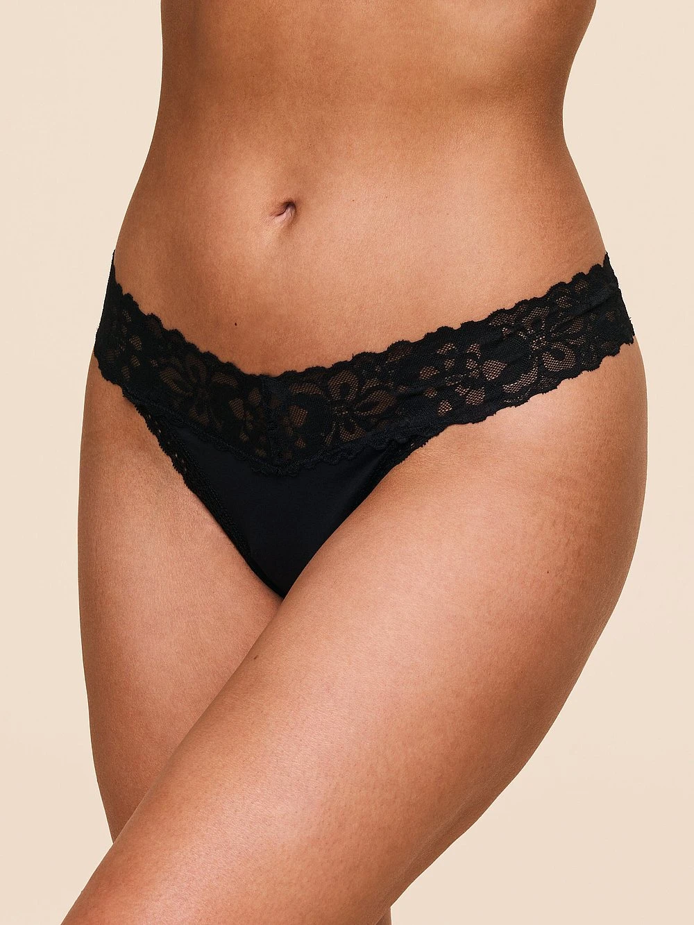 Trimmed with pretty lace, this cotton-blend Thong is made for every day.
