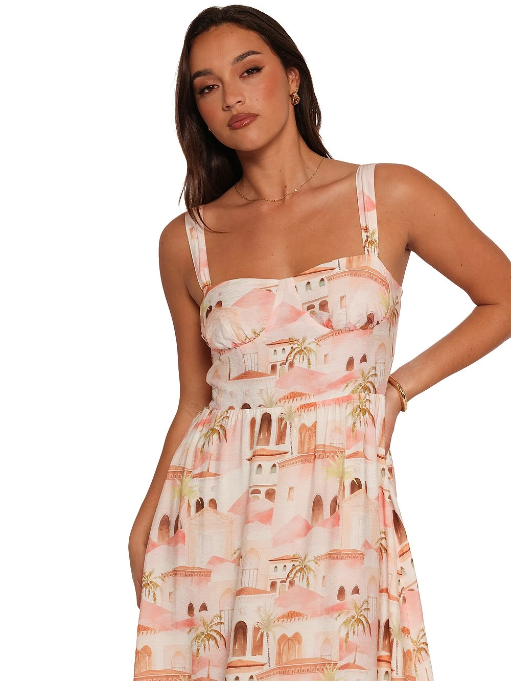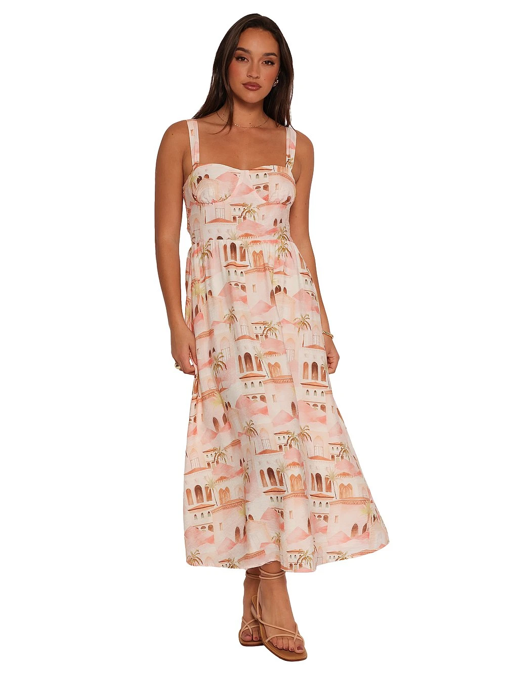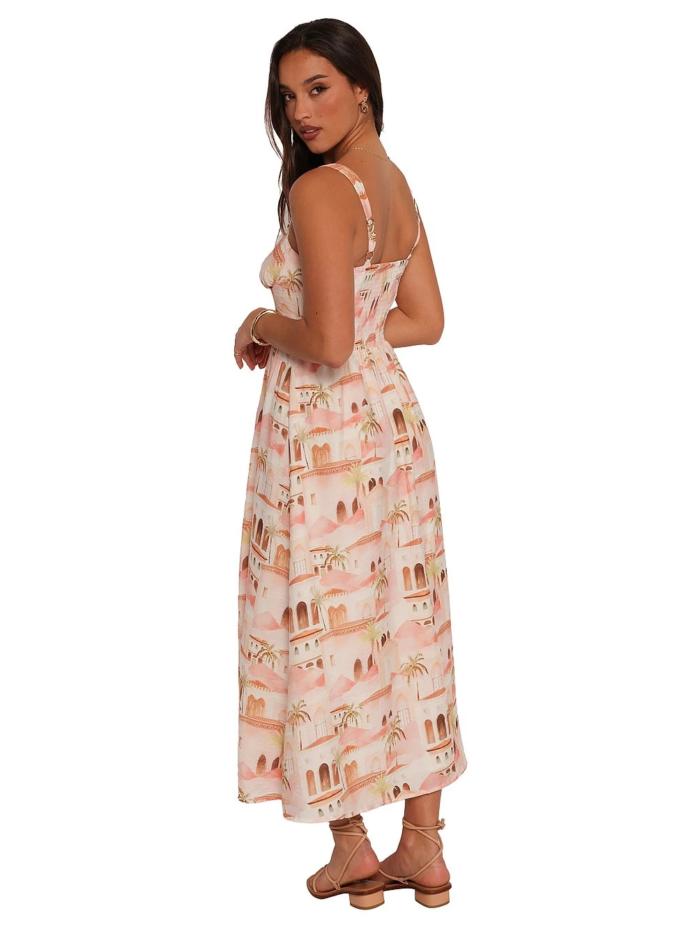 Adorned in a wanderlust-worthy print, this chic maxi Dress boasts adjustable straps and a shirred back panel for extra comfort.