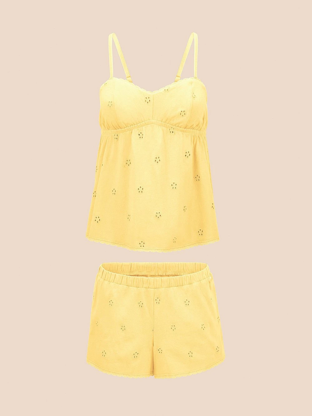 Dainty floral eyelet finishes adorn this breezy cotton set that’s a must-wear on warm summer nights. Double-lined cups and adjustable straps will have you lounging in comfort.