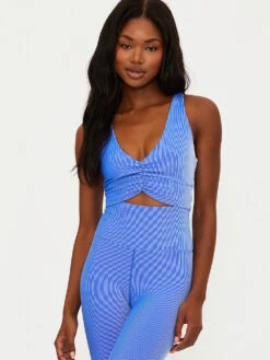 Now in a super-soft cable-knit fabric, this workout Top has a v-neckline with fixed crossed straps at the back and ruching at the front.