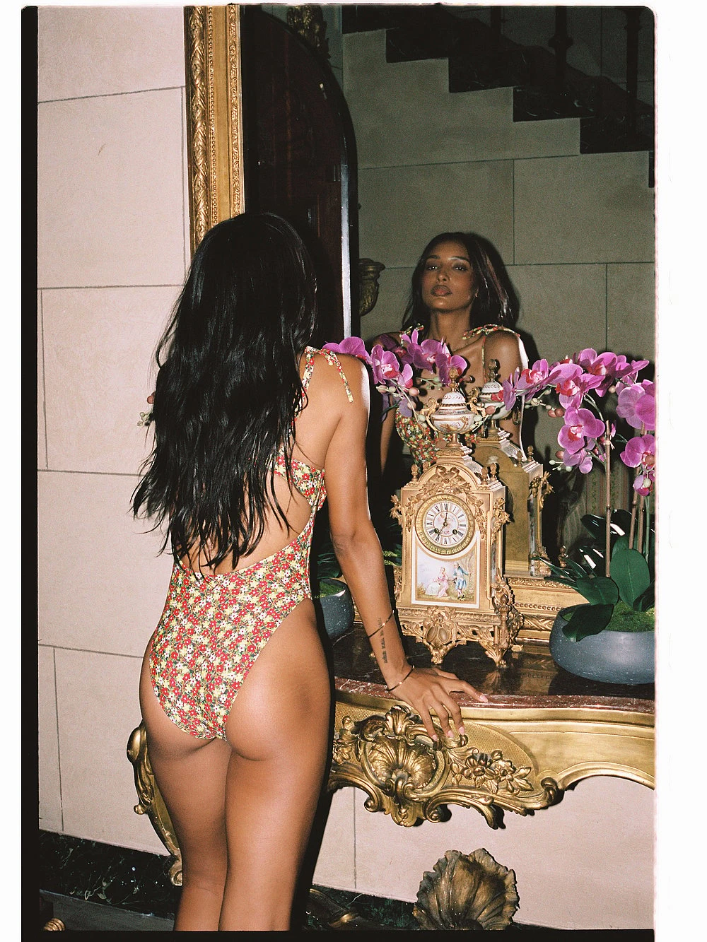 Inspired by Amalfi Coast summers, this swimwear collaboration with model Jasmine Tookes blends chic silhouettes with timeless colors and prints.