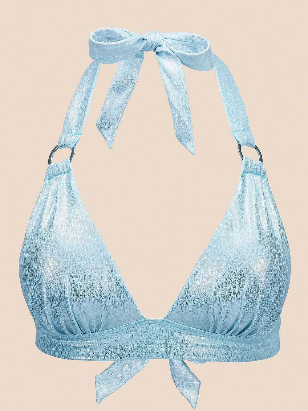 Get a sexy look this beach season with push-up triangle cups, silver hardware, and self-tie straps at the back and neck that make for the perfect fit.