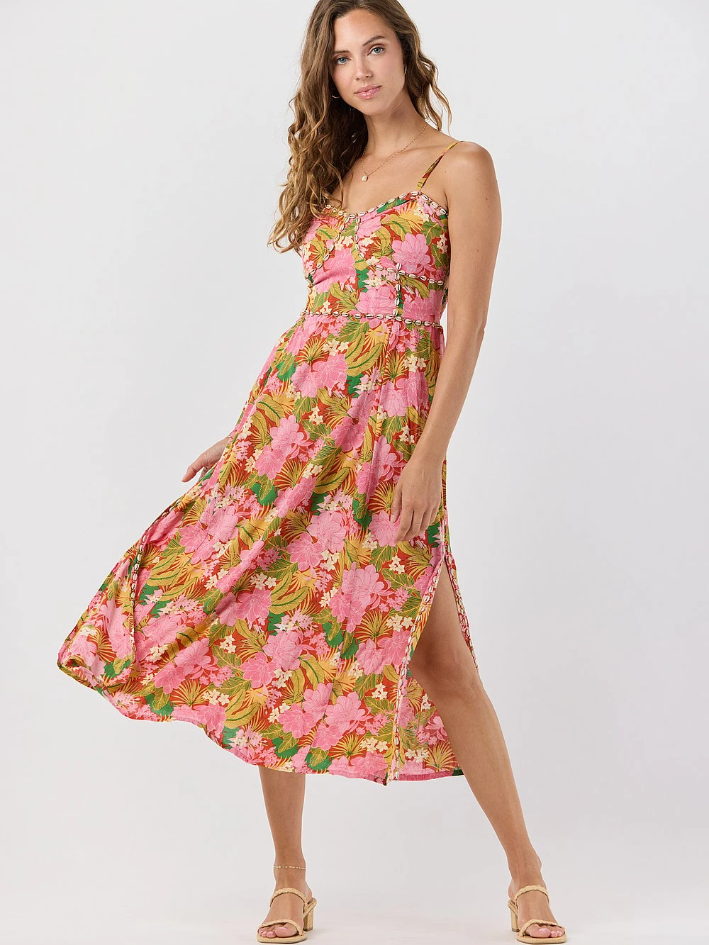 Embrace the sea with this shell-adorned maxi dress. Adjustable straps and a tie-back closure ensure a perfectly comfortable fit, while shell details make every day a beach day.