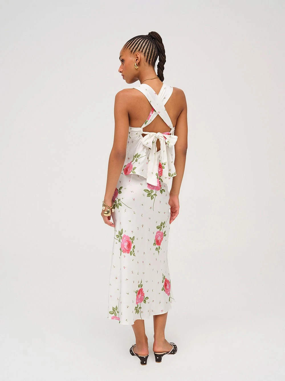 Adorned with a sweet allover floral print — exuding all things feminine. This floral Midi skirt sits at low waist, and is bias cut for a flattering fit.