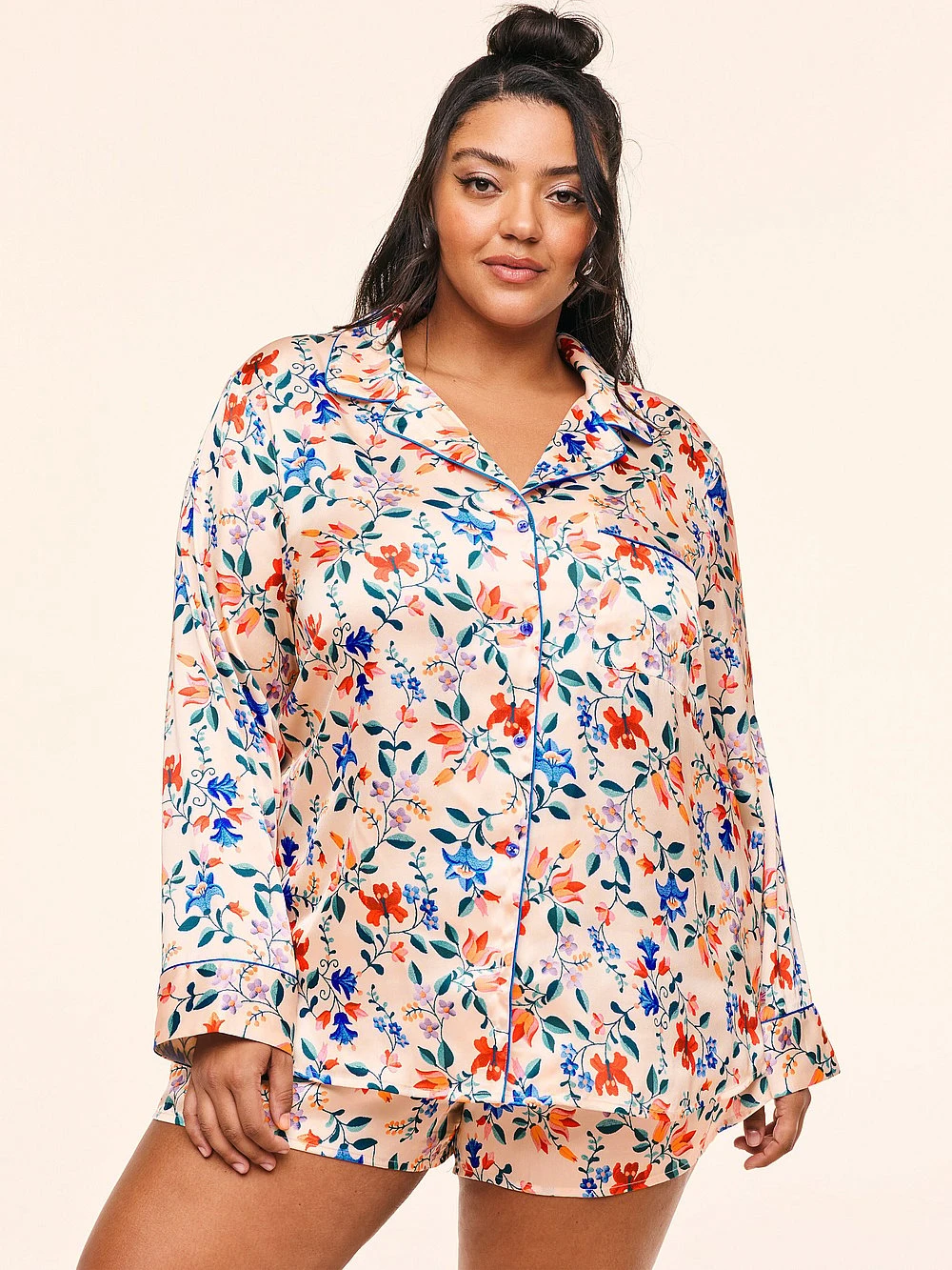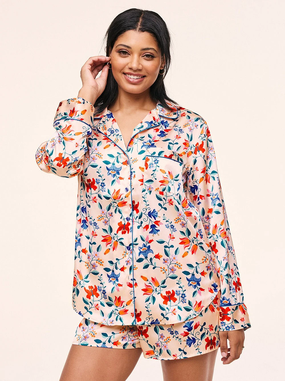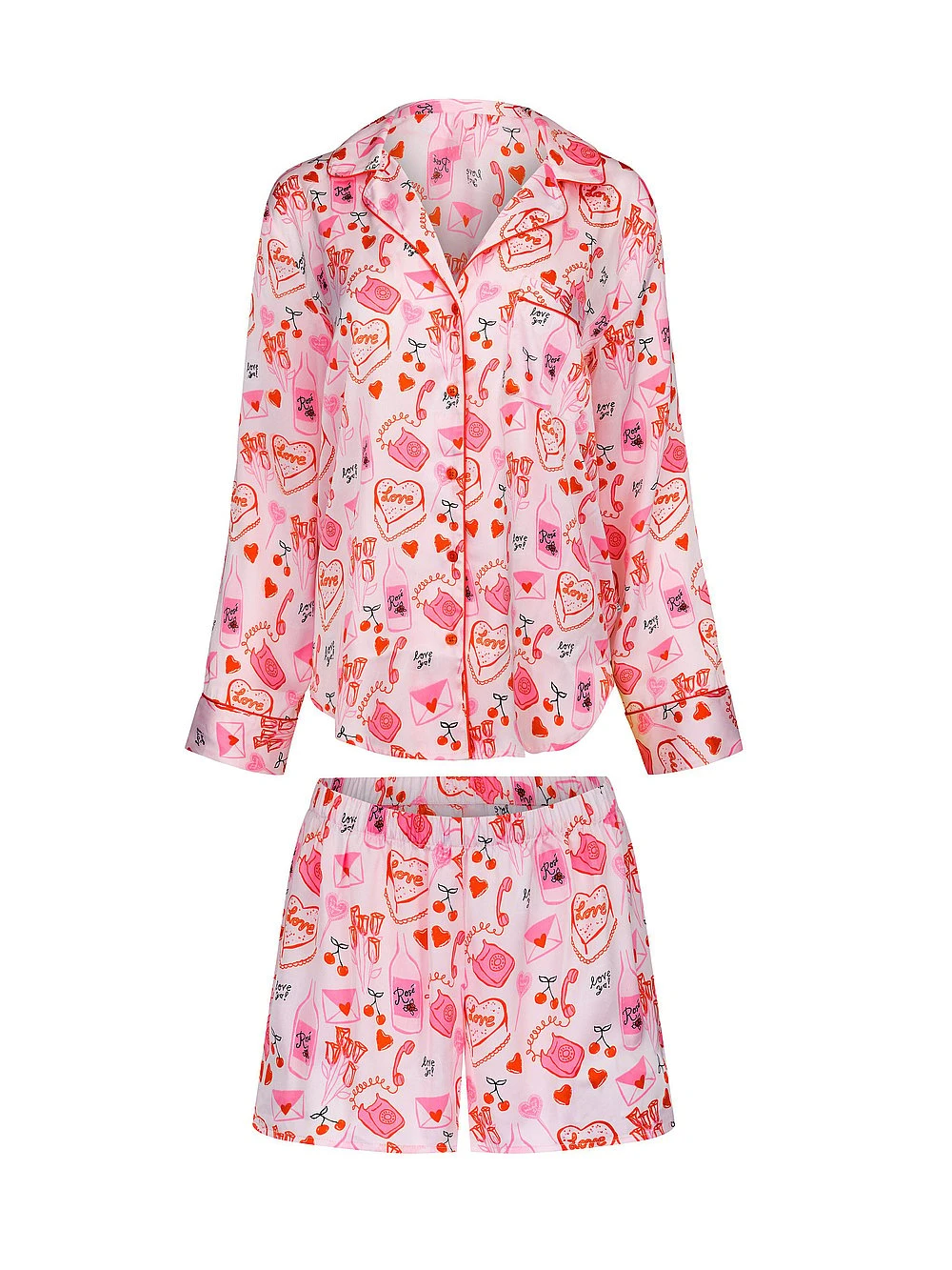 This silky satin sleepwear set is the perfect way to feel sexy and cozy at the same time. With a collared long sleeve button-down top and matching shorts — you’ll stay cozy whether you’re lounging around the house or getting ready for a night out, this sleepwear set is just what you need.