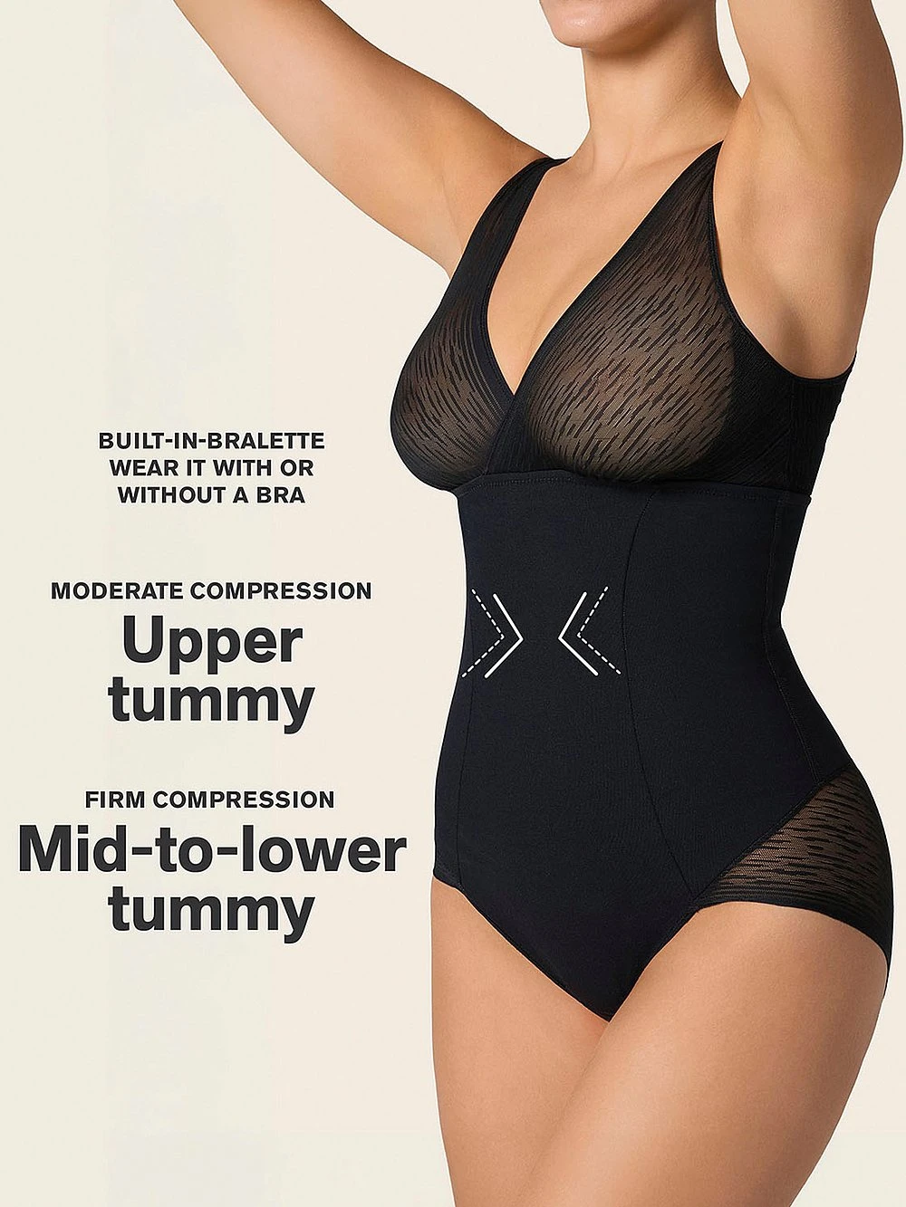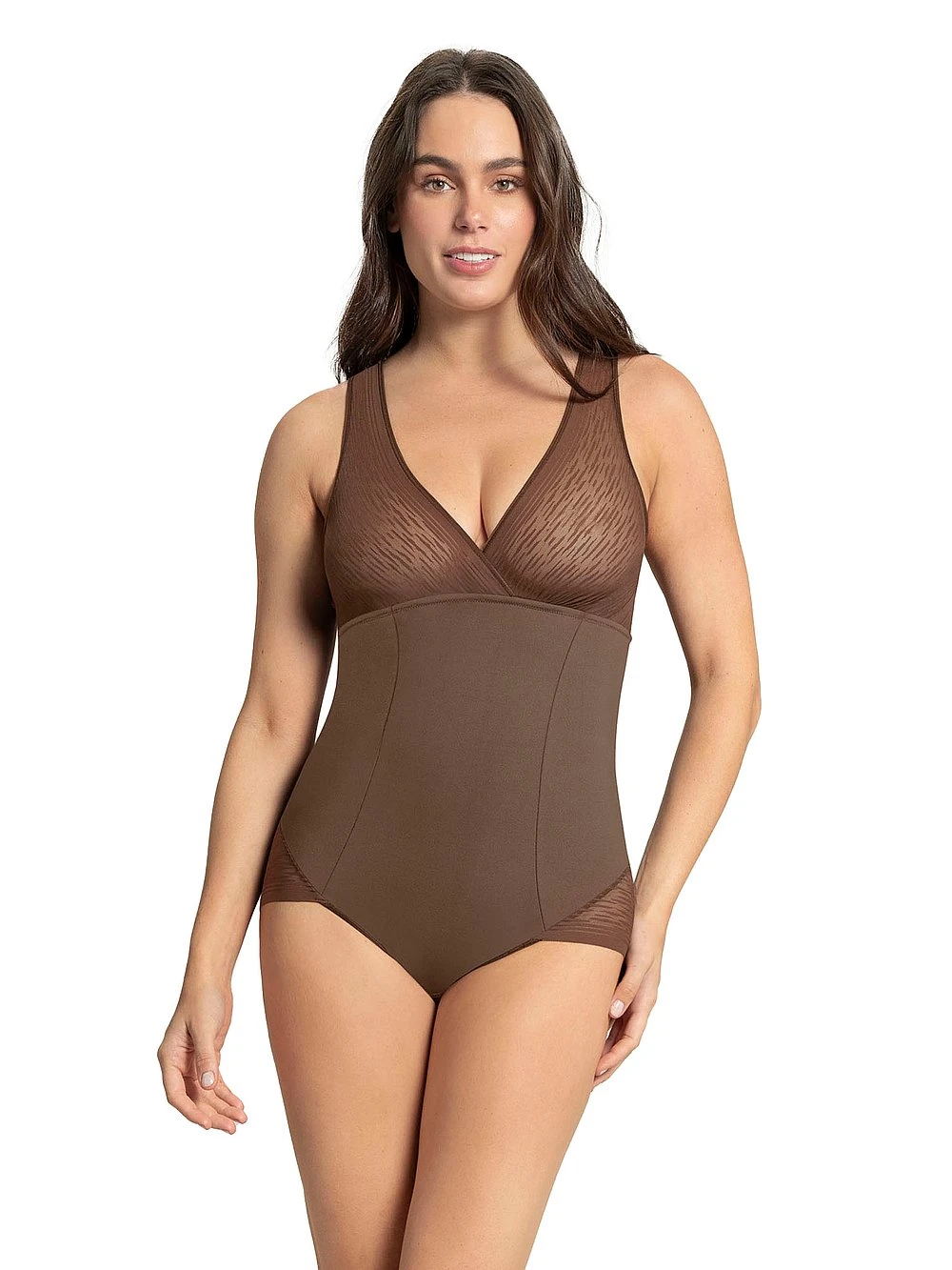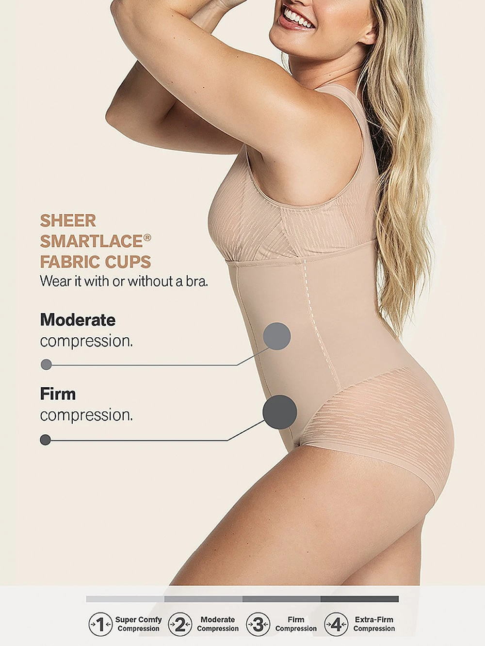 This shaper bodysuit has double-layered power, made of soft fabric and an inner layer of PowerSlim® fabric to sculpt your torso for an hourglass effect. The bottom is crafted of SmartLace® for a no-show, non-flattening look. By Leonisa.
