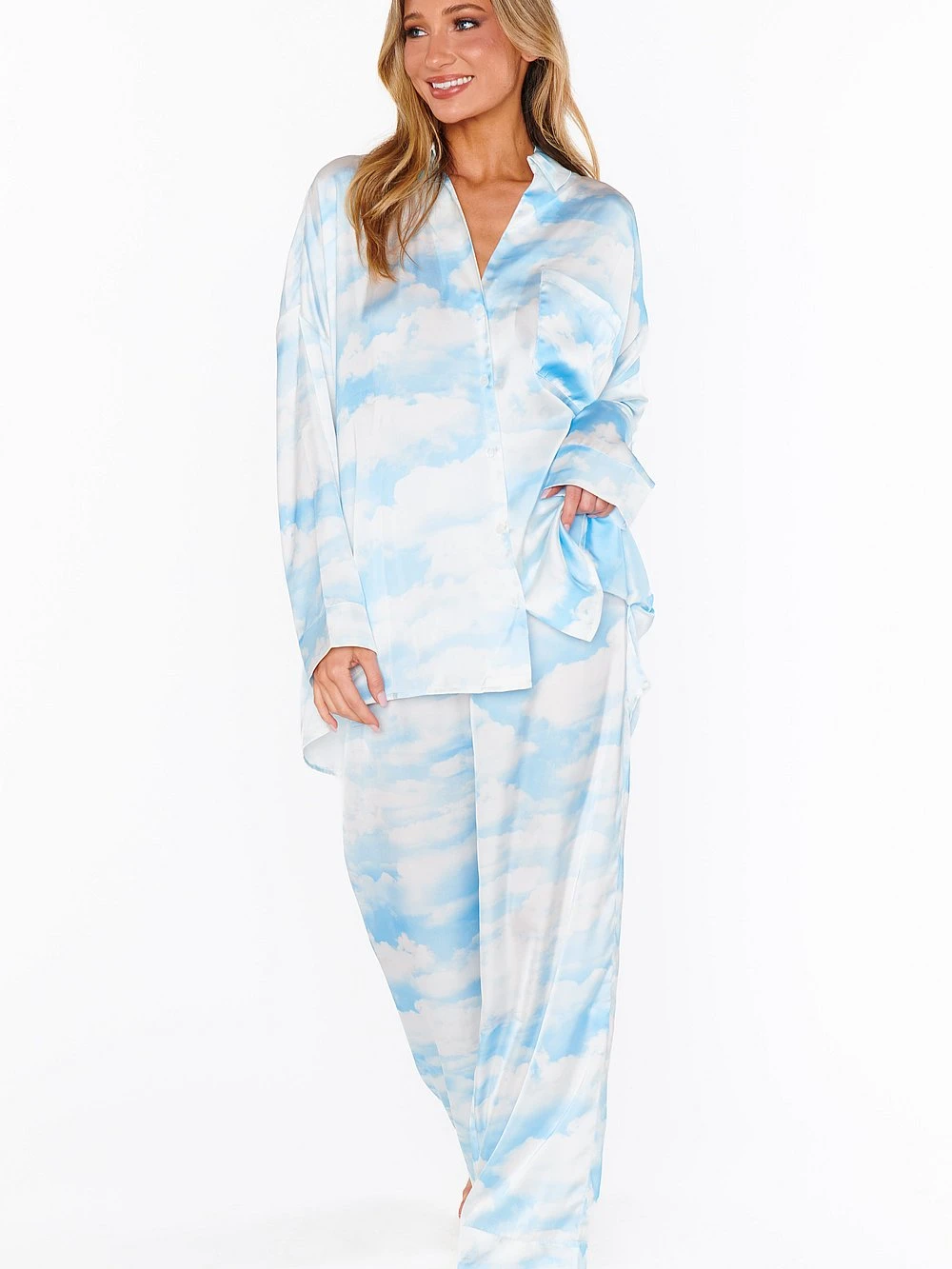 Whether lounging or sleeping, this versatile PJ set will have you dreaming in style, thanks to a silky-soft construction with a long-sleeve top and drawstring pants.