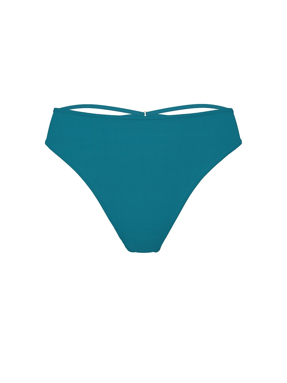 Criss-cross this sexy style off your must-have list. Throwback styling includes a high-waist silhouette, strappy details in back, and a flattering high-cut leg.