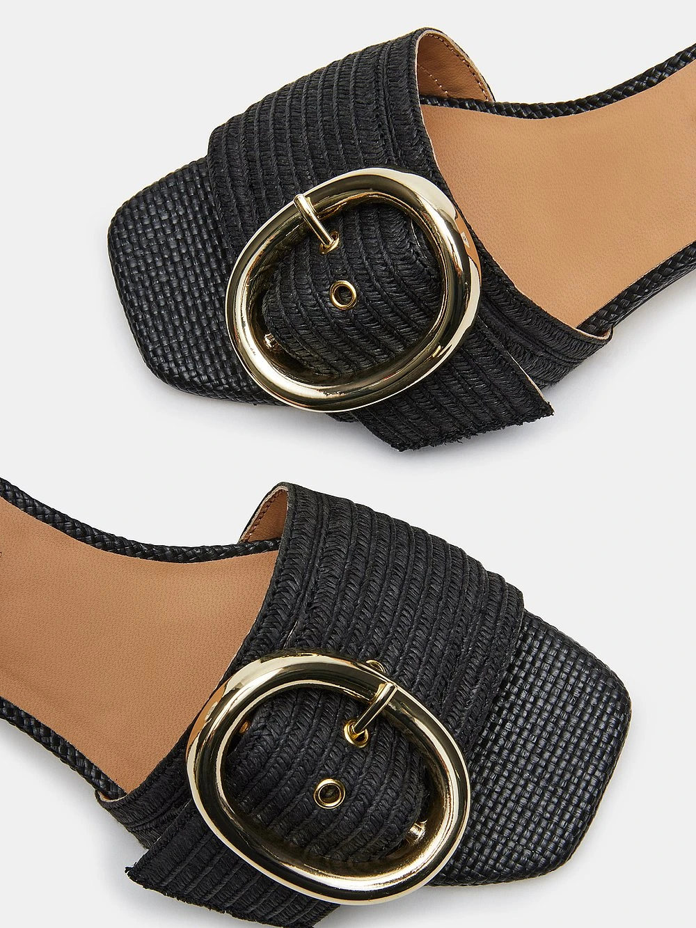 The SEACREST features an open-toe, square-toe design and a buckle ornament detail making for a stylish and comfortable shoe. This mule heel also features a raffia design for a unique elegant look. Step out in confidence with the added support of the block heel.