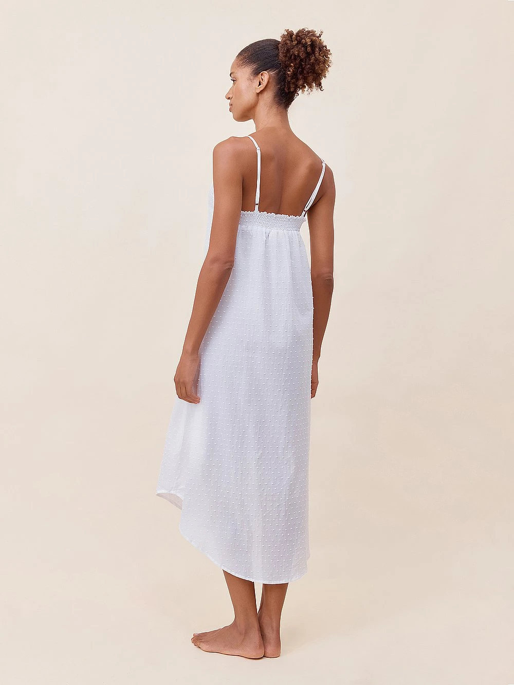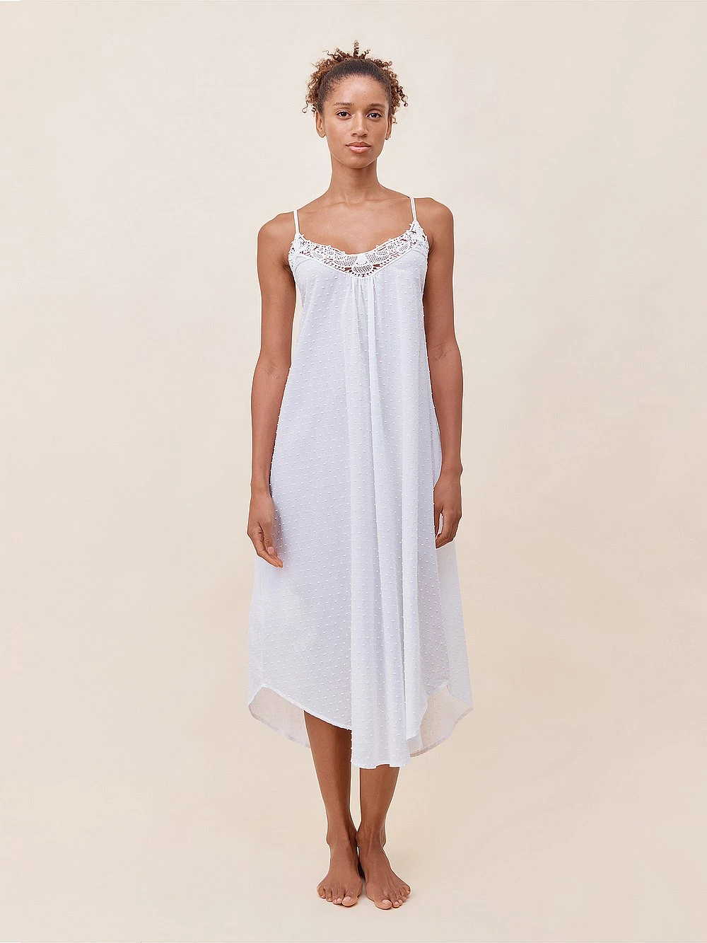 Float through summer in this Swiss dot maxi nightgown, made of cool 100% cotton. It’s made for warm nights.