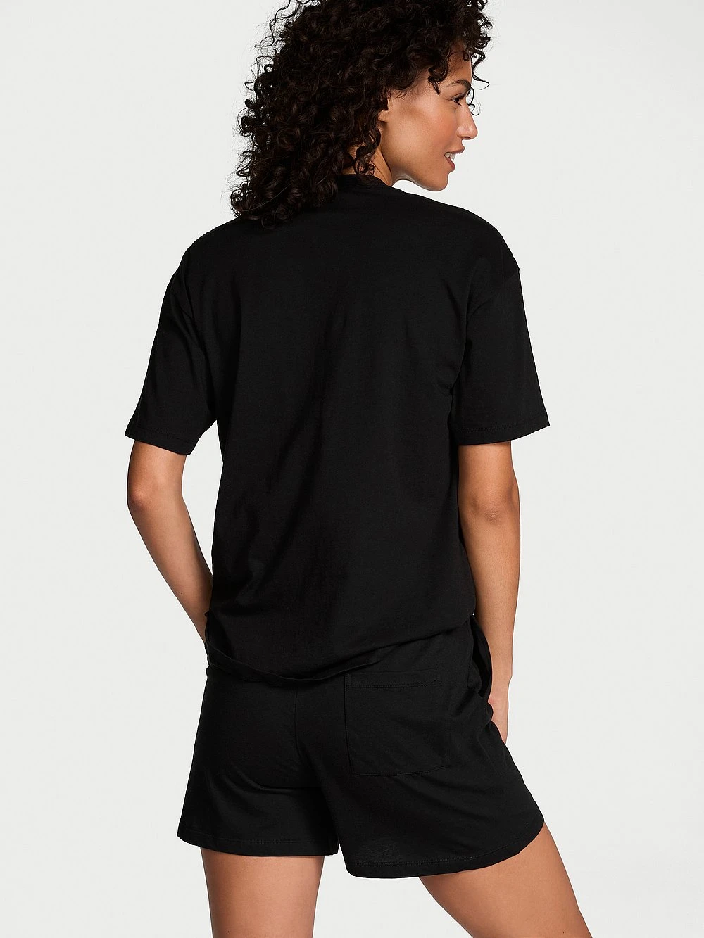Discover an all-cotton essential Set you’ll wonder how you lived without. On top, a soft, short-sleeved Tee, while the matching drawstring Shorts feature a foldover waistband with our signature logo elastic.