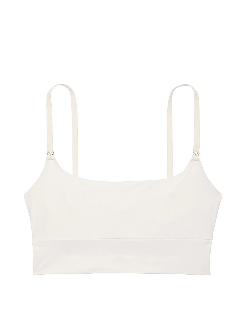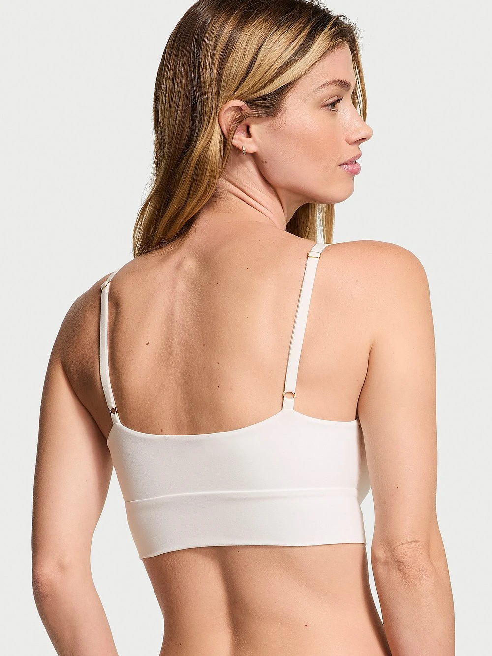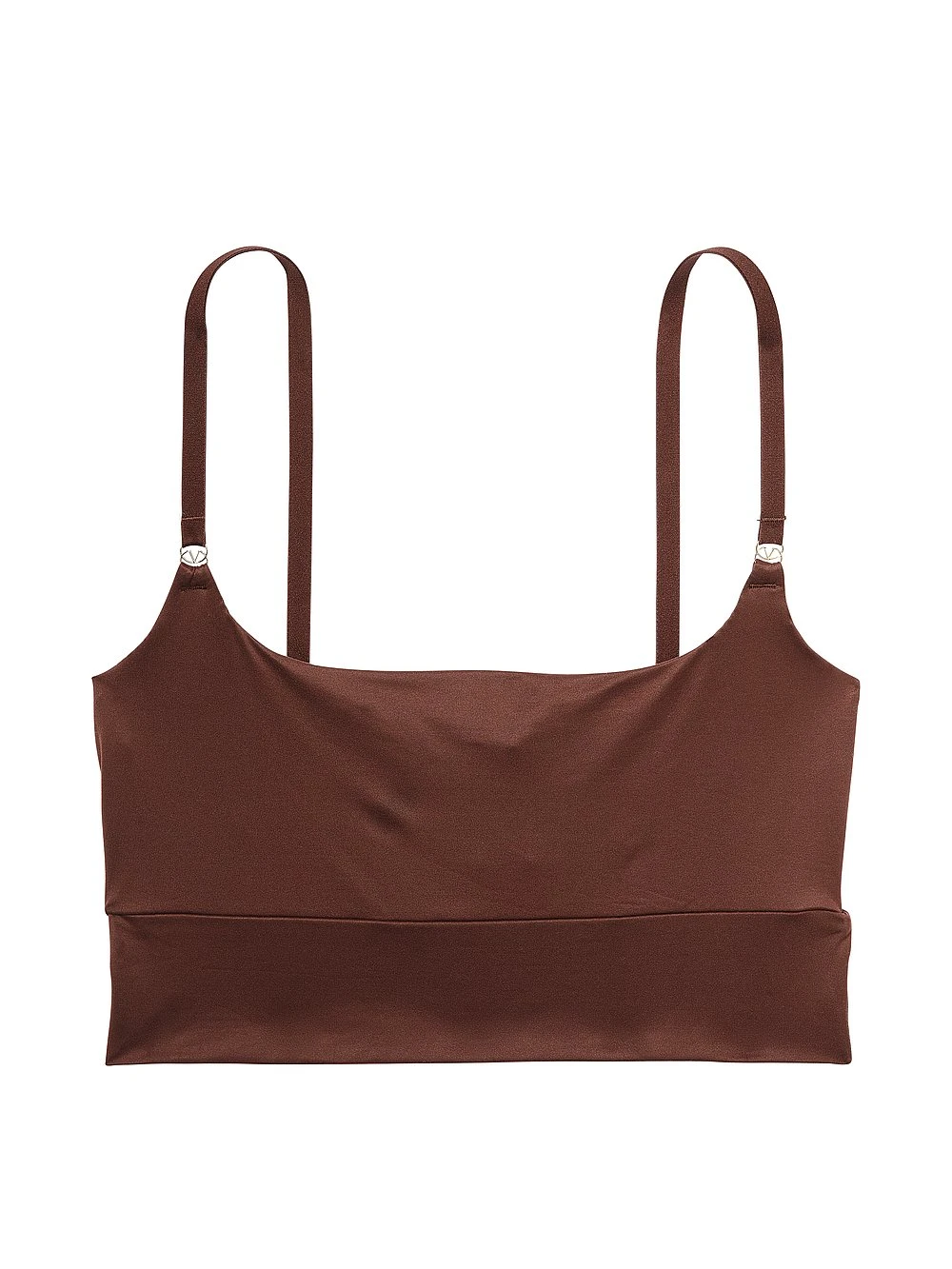 Gold-tone hardware at the straps adds a luxe touch to this easygoing, longline piece. An ideal base layer, it provides comfy, smoothing support and seamless coverage. Pair with the matching bike shorts for the complete, sleek downtime look.