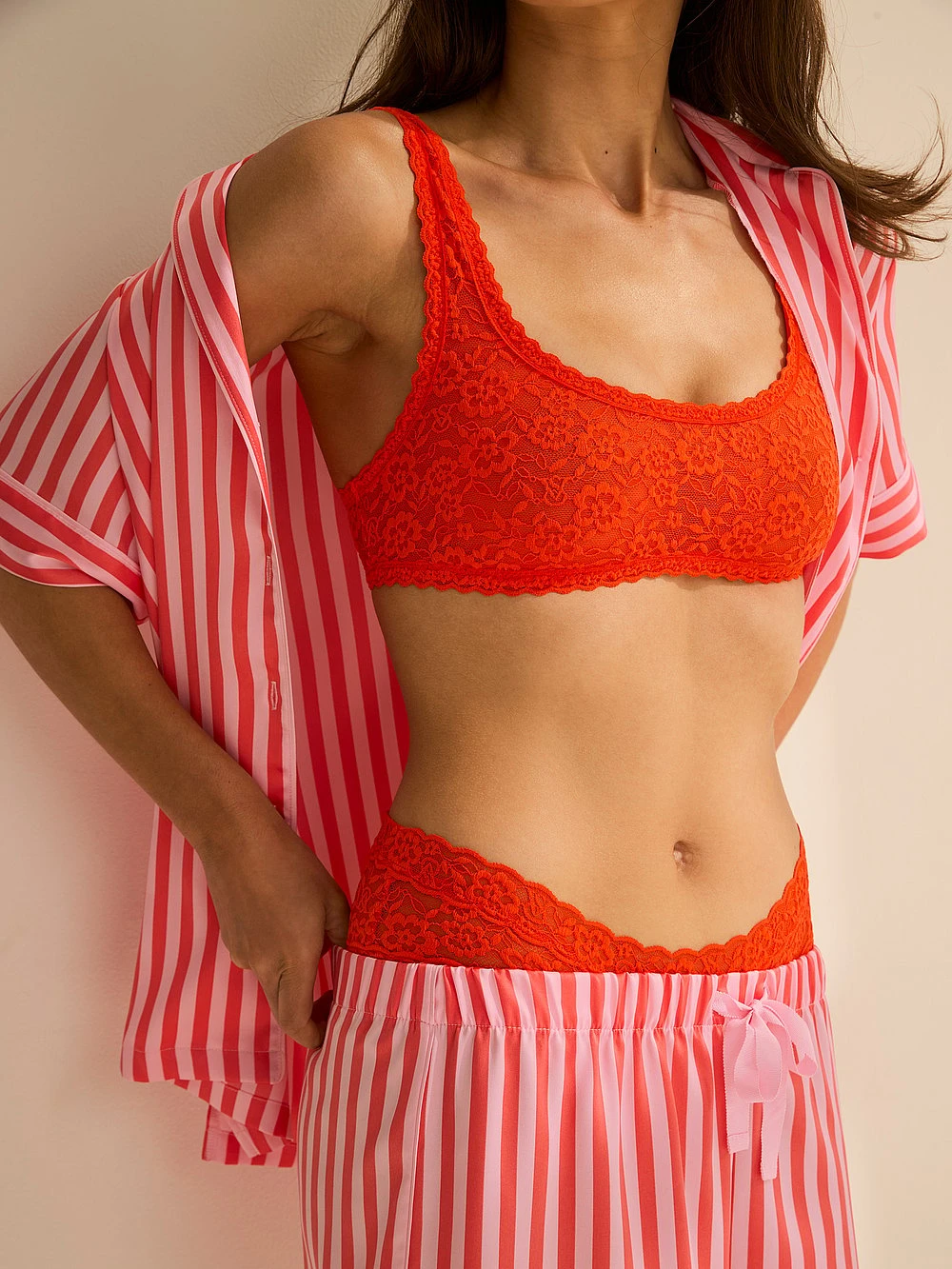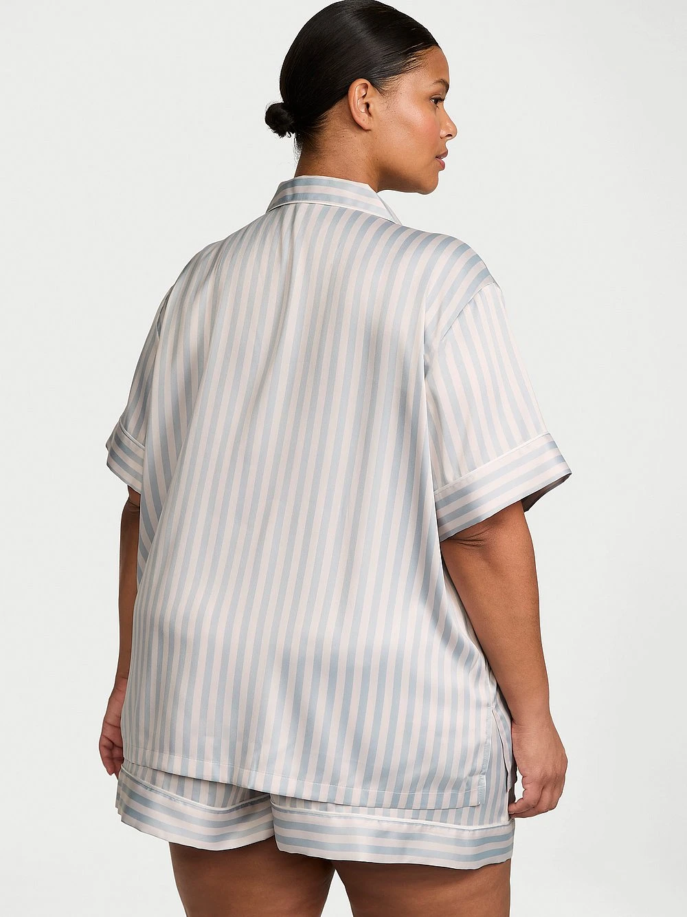 Striking seasonal hues melt one into the next on glossy satin fabric to create this fresh PJ set. Wind down in luxe Shorts and a matching short-sleeve Top with a chest pocket, notch collar, and decorative piping.