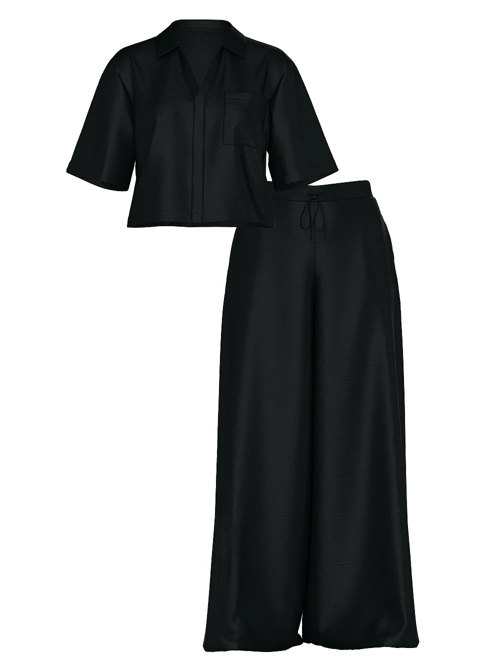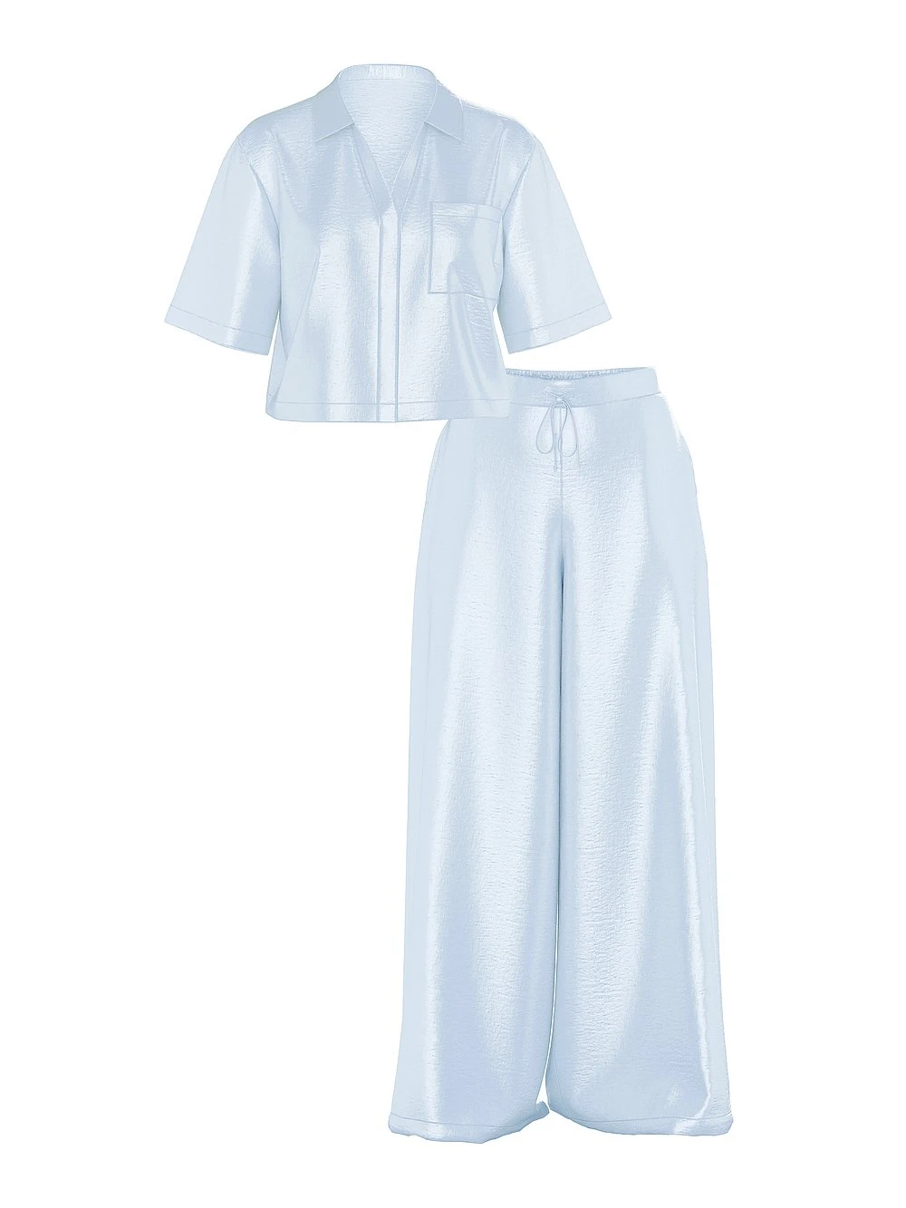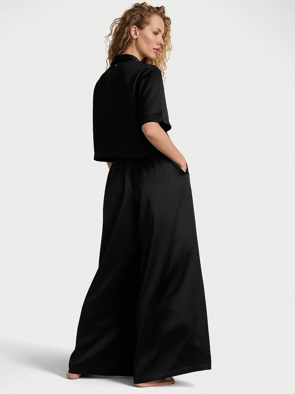 Pajama dressing just got a whole lot more luxurious, thanks to our newest, substantial satin fabric with a glamorous sheen. The chic, cropped, button-front Top perfectly hits right at the high waist of the flowing pants.
