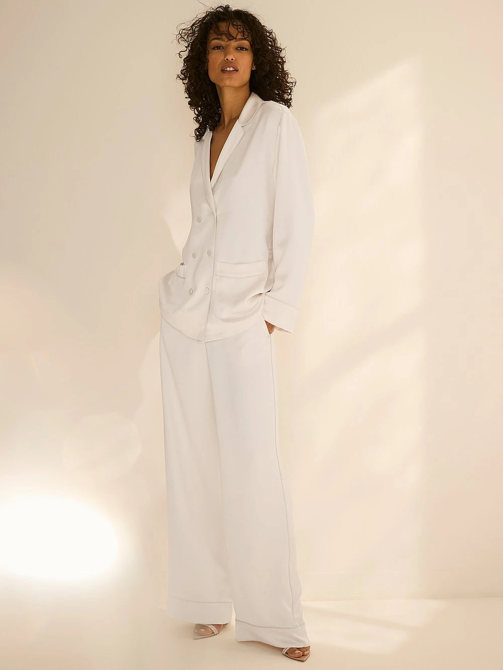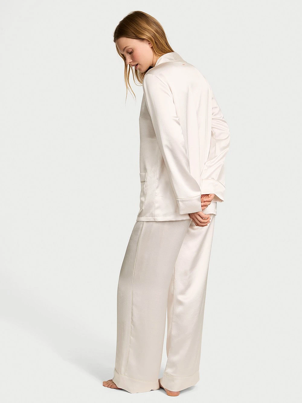 Pajama dressing just got a whole lot more luxurious, thanks to our newest, substantial satin fabric with a glamorous sheen. On top, sophisticated double-breasted styling is finished with patch pockets.