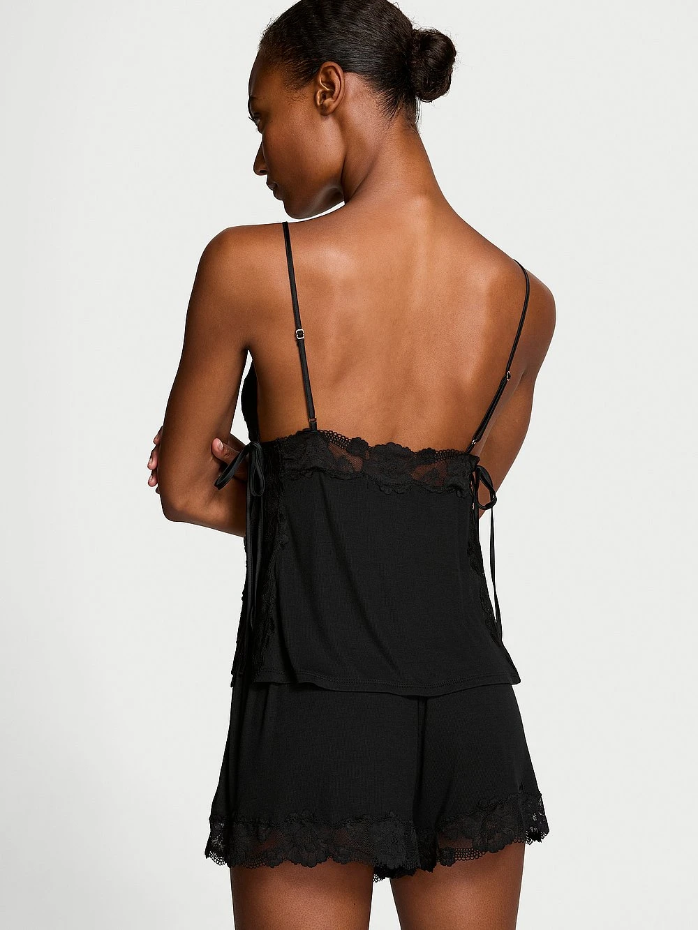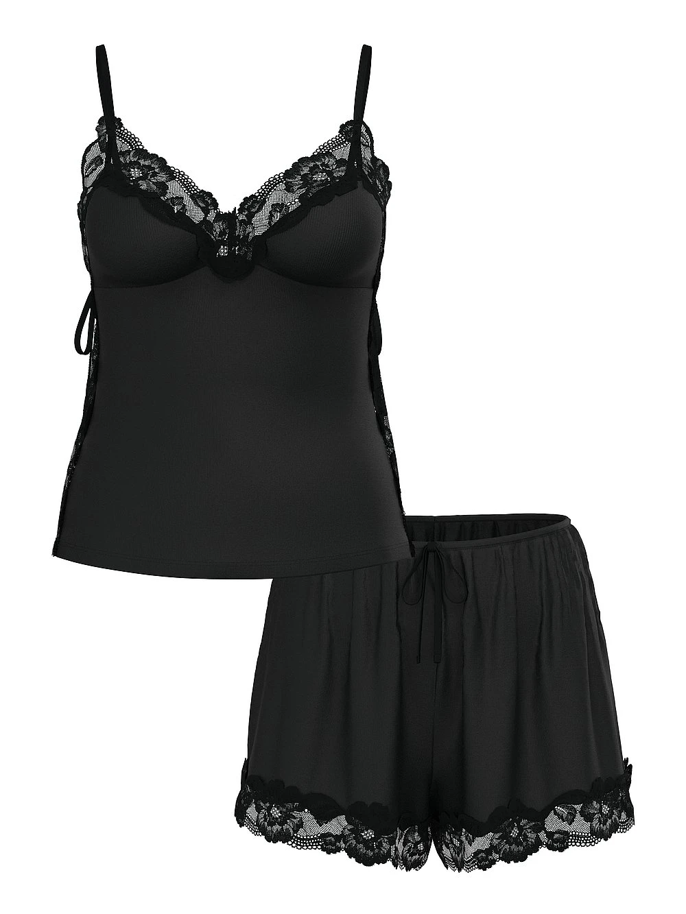 Feel the difference. Our ribbed sets are impossibly soft, in 97% modal with a touch of stretch for pure comfort. Here, in a chic, lace-trimmed cami with matching shorts.