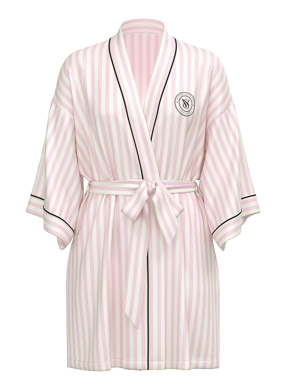 Wrap yourself in a little luxury with this glossy robe. The polished-yet-easygoing style is finished with piping detail and logo embroidery.