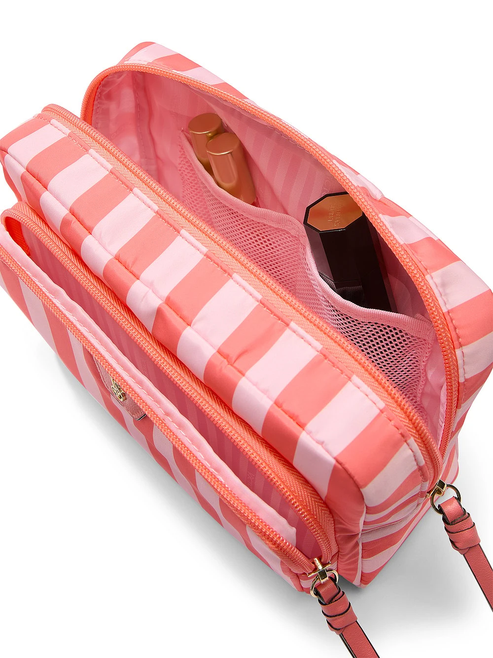 Go glam. This convenient and stylish travel-ready bag fits all your makeup essentials, whether packed in your carry-on or tucked in your work tote.