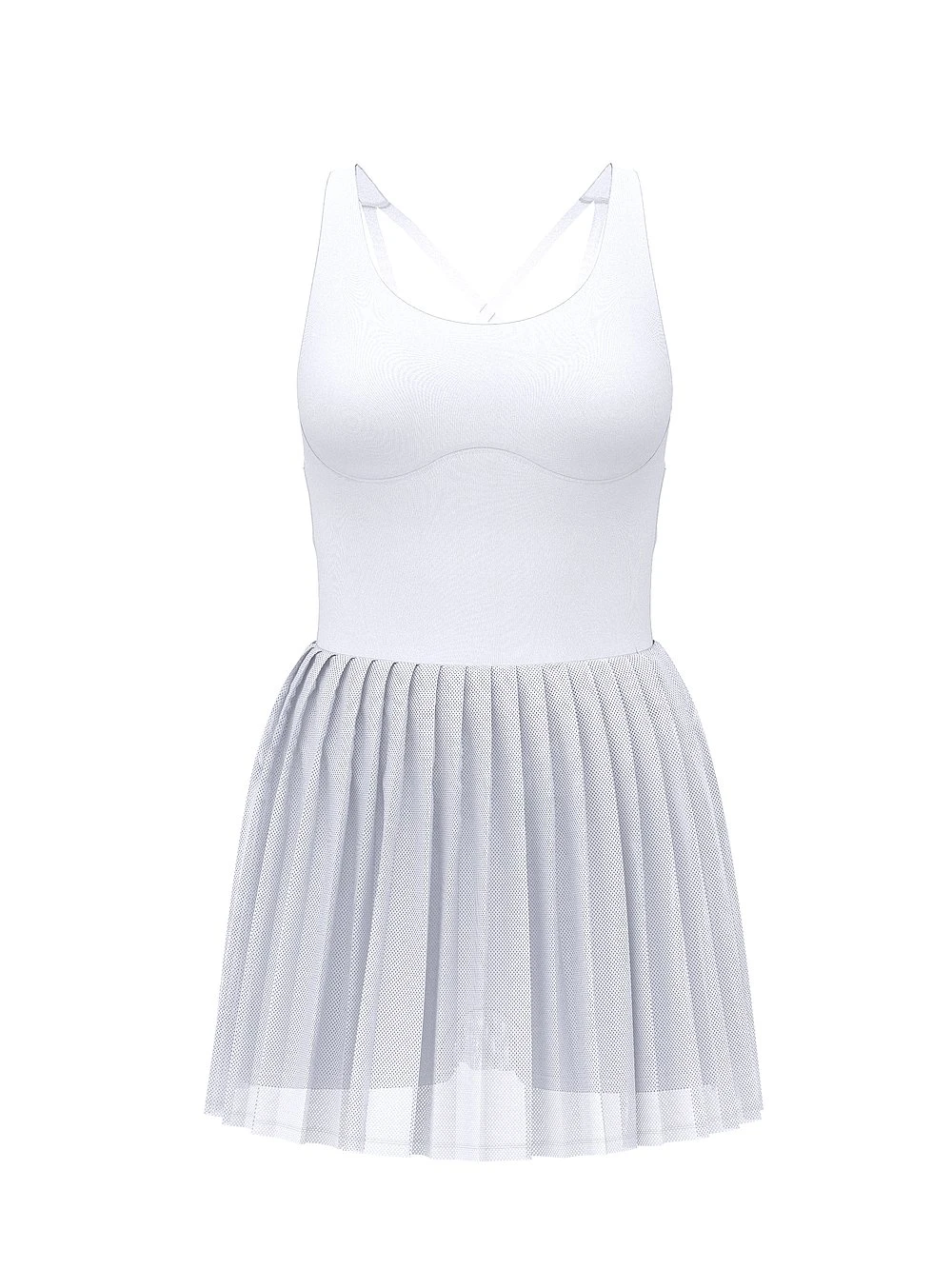 We’re changing the game with white pieces you can sweat through that resist show-through. Our optic performance collection puts an innovative twist on summer’s white-hot activewear trend. The score is always “love” with this breezy, mesh-skirt style.