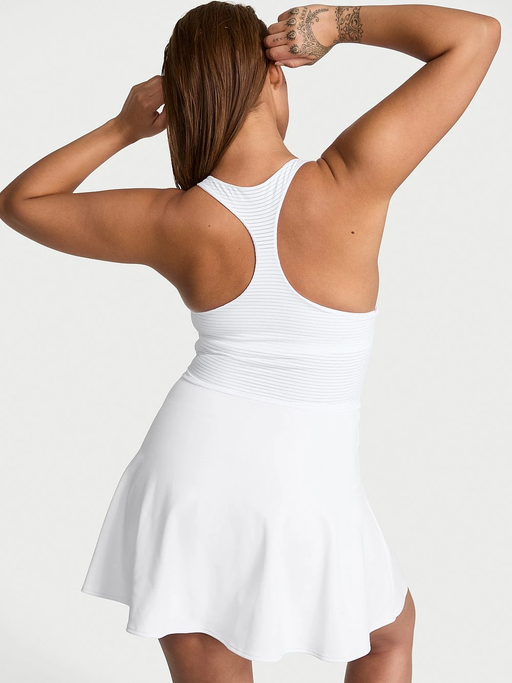 We’re changing the game with white pieces you can sweat through that resist show-through. Our optic performance collection puts an innovative twist on summer’s white-hot activewear trend. This racerback Dress looks great on and off the courts; sheer powermesh panels help you keep your cool.